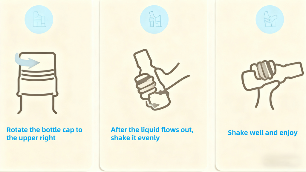 Press cold/warm water for 3 seconds → Shake to drink (no stirring required!)